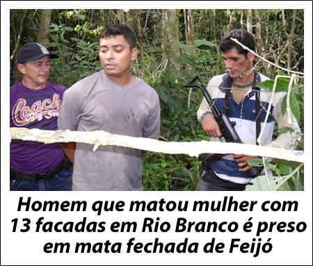 O autor de um dos crimes que espantou pelos requintes de crueldade foi capturado pela Polícia Civil, na zona rural do município de Feijó. Francisco Silva do Nascimento, 27, matou com 13 facadas, no dia 13 de novembro, Maria Helena da Silva Leão, 32, que seria sua esposa. O crime aconteceu no Ramal do Pastor, bairro Vila Acre na cidade de Rio Branco.