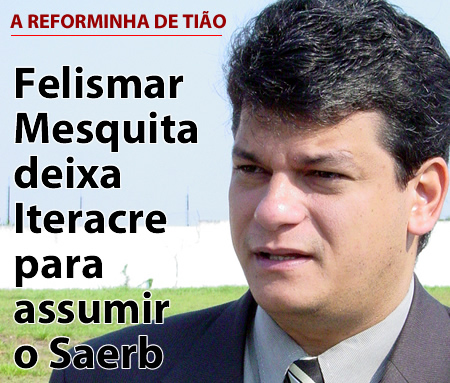 O governador Tião Viana (PT), continua o remanejamento de nomes no primeiro escalão do governo tentando encontrar a equipe ideal para sequenciar o trabalho no executivo do estado. O governador convidou o presidente do Instituto de Terras do Acre (ITERACRE), Felismar Mesquita para assumir o SAERB, e cuidar da estadualização do sistema de água e esgoto em todo o estado.