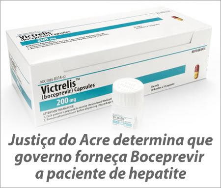 Um homem de 48 anos, de Rio Branco (AC), portador de hepatite C, obteve na Justiça do Acre a primeira decisão que obriga a Secretaria Estadual de Saúde a fornecer o Inibidor de Protease Victrelis (Boceprevir), o novo medicamento usado no tratamento da doença.