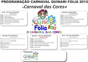 Está tudo pronto para o início do QUINARI FOLIA, tradicional festa carnavalesca do município do Quinari, que começará sexta-feira, dia 17, a partir das 23h, quando o prefeito do município James Gomes fará a abertura oficial do carnaval 2012.