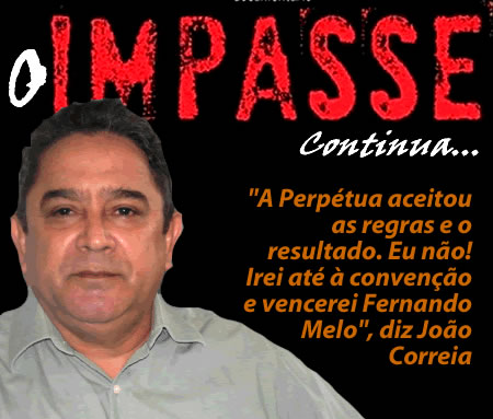 “A Perpétua aceitou as regras e o resultado, eu não. Irei à convenção e vencerei!”. A frase é do incansável João Correia. Para garantir espaço democrático dentro do PMDB, o ex-candidato ao senado aos poucos vai dando aos capítulos de sua batalha o mesmo roteiro do filme: democracia em preto e branco, que teve a produção de Gustavo Gama Rodrigues.