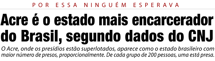 O Acre, onde os presídios estão superlotados, aparece como o estado brasileiro com maior número de presos, proporcionalmente. De cada grupo de 200 pessoas, uma está presa.