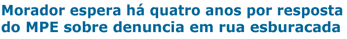 Morador espera há quatro anos por resposta do MPE sobre denuncia em rua esburacada