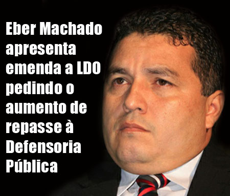 O deputado Eber Machado (PSDC), do bloco independente, na Aleac, apresentou nesta segunda-feira, 02, uma emenda à Lei de Diretrizes Orçamentárias (LDO), pedindo que o percentual de repasse de recursos à Defensoria Pública, que atualmente é de 0,58%.