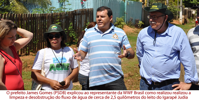 Em visita à área de preservação permanente localizada no antigo Águas do Quinari, na manhã desta quinta feira, o prefeito James Gomes, acompanhado dos secretários municipal e estadual de meio ambiente, Raxide Silveira e João de Deus, respectivamente, mostrou as ações que vêm sendo desenvolvidas pela Prefeitura de Senador Guiomard, com a participação da Sema estadual e do conselho gestor, à representantes da WWF Brasil.