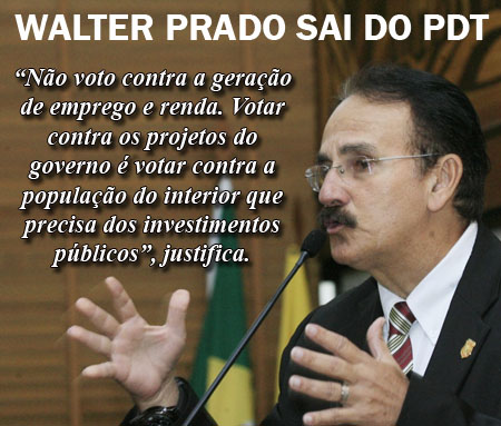 O deputado Walter Prado entregou pedido de desfiliação do PDT, na tarde desta segunda-feira, 16, e deverá assina sua ficha de filiação no Partido Ecológico Nacional (PEN).