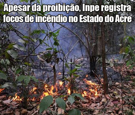 Mesmo com a proibição total das queimadas em todo o estado, imagens de satélite mostram focos de incêndio no Acre, principalmente nas regiões do Alto Acre e Juruá.