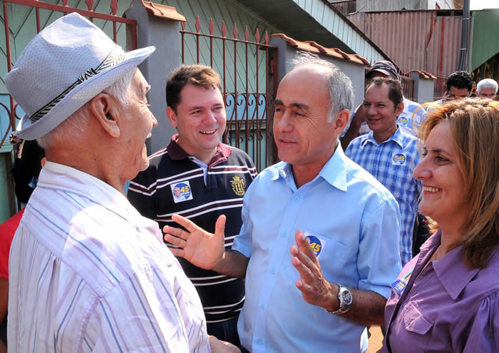 Acompanhado de sua esposa, duas netas, o vice Alysson Bestene e candidatos da Coligação Produzir para Empregar, Tião Bocalom visitou a parte comercial do Bairro Conquista, na manhã desta segunda-feira, (27).