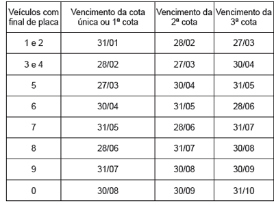 De acordo com a Sefaz, o imposto poderá ser efetuado em cota única ou em três parcelas, de acordo com o algarismo final da placa.