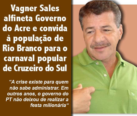 O prefeito de Cruzeiro do Sul, Vagner Sales (PMDB), não perdeu a oportunidade de alfinetar a justificativa usada pelo Governo do Acre e pela prefeitura de Rio Branco. “A crise existe para quem não sabe administrar. Em outros anos, o governo do PT não deixou de realizar a festa milionária”, enfatiza Sales.
