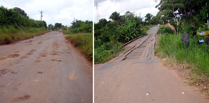 “Fica muito difícil andar por aqui porque é preciso fazer quase que um malabarismo. Os buracos e o mato estreita a estrada. Sem falar nas pontes” diz o produtor rural Antônio Costa Oliveira.