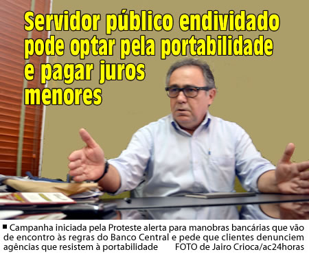 A Associação Comercial do Acre (Acisa) alerta servidores públicos municipais e estaduais endividados com empréstimos bancários para a possibilidade de portabilidade, uma resolução do Banco Central de 2006 que possibilita a transferência de um débito de um banco para outro em condições mais atraentes.