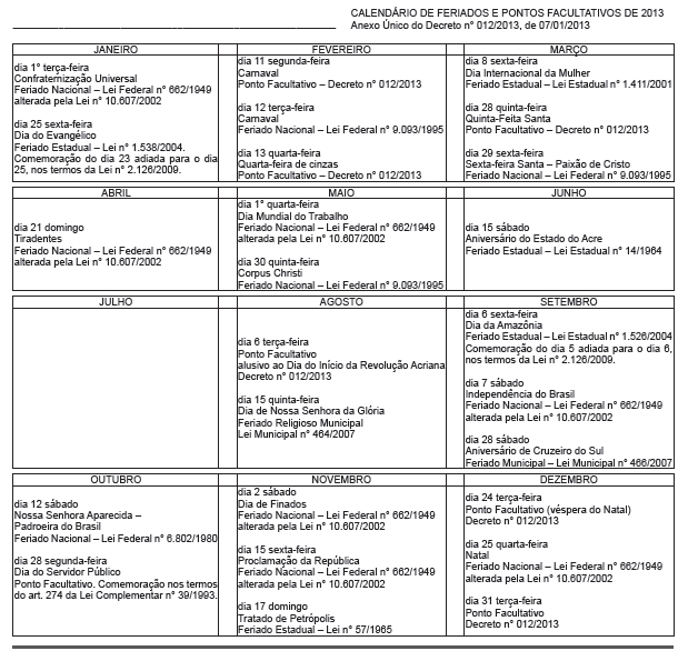 Mas, enquanto não há definição, o calendário oficial do Ministério do Planejamento, Orçamento e Gestão, que vigorou no ano passado para os servidores públicos federais e, de acordo com portaria do ministério, adaptado para 2014, são feriados nacionais as seguintes datas: