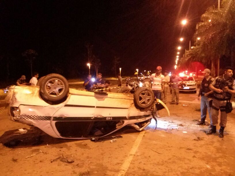 A policia Militar foi acionada e nesse momento iniciou uma perseguição aos bandidos que pilotavam o taxi em alta velocidade. Logo em seguida a dupla perdeu o controle do veiculo que capotou diversas vezes na Avenida.