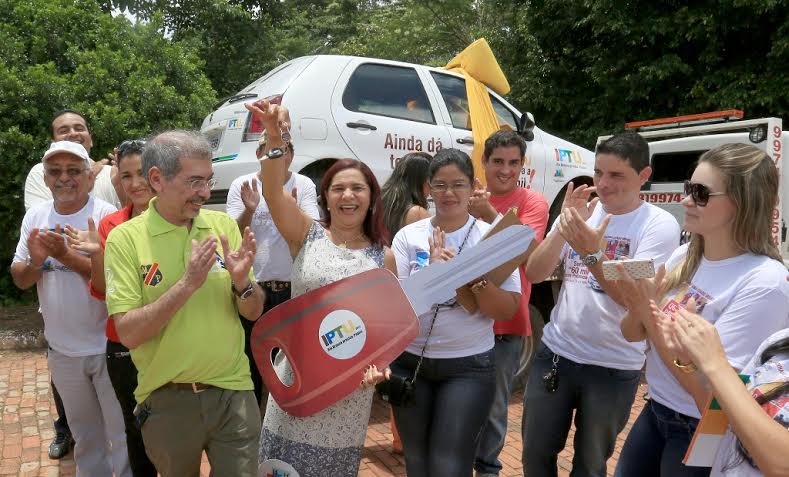A funcionária pública federal Maria do Socorro Soares, dona do imóvel localizado na Rua do Silêncio, no Conjunto Xavier Maia, recebeu no último sábado, 8, o prêmio principal do programa IPTU Que Dá Prêmios, um veículo Gol zero km. O carro foi entregue pelo prefeito Marcus Alexandre. “Aconselho a todos a pagar o IPTU em dia porque com isso a pessoa ajuda a cidade e pode ganhar prêmios”, disse Maria do Socorro.