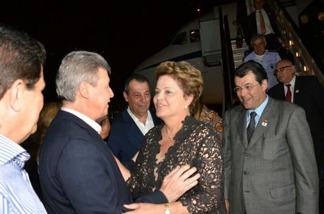A presidente Dilma Rousseff (PT) chegou a Manaus no seu avião presidencial por volta das 20h30 desta quinta-feira (13) para visita oficial à cidade. Acompanhada durante a viagem dos senadores da bancada amazonense Eduardo Braga e Vanessa Grazziotin, Rousseff foi recepcionada ainda na pista de pouso do aeroporto local pelo governador Omar Aziz, prefeito da capital Arthur Neto e senador Alfredo Nascimento.