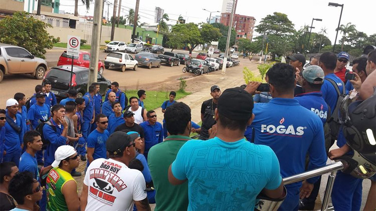 Dezenas de trabalhadores da Fogás e Amazongás em Porto Velho paralisaram as atividades nesta segunda-feira em protesto pela equiparação dos salários aos parâmetros dos demais estados. São envasadores, distribuidores e recuperadores de botijas que hoje recebem pouco mais de R$ 800, explica Antônio Acácio do Amaral, da Federação Interestadual dos Trabalhadores nas Indústrias nos Estados de Rondônia e Acre (Fitrac).