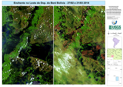 Segundo a Divisão de Sensoriamento Remoto do Instituto Nacional de Pesquisas Espaciais (Inpe/MCTI), as áreas inundadas na Bacia do Mamoré, na Bolívia, recuaram. O nível das águas nos rios Madre de Dios, Beni e Guaporé também baixaram. A Bacia é formada pelos principais afluentes do Rio Madeira. Autoridades da Defesa Civil comemoram os dados analisados através de imagens de satélite.