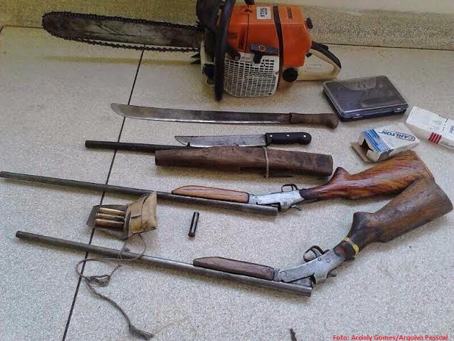 De posse dos bandidos, a polícia encontrou duas armas de fogo, muita munição e facões. Os detidos, Antônio Carlos Sombra e José Jardel Sabino, são conhecidos na região por diversos moradores. Eles são acusados de serem violentos e amedrontarem a população.