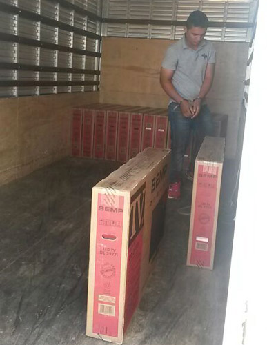 Policiais da 5ª Delegacia de Polícia em Porto Velho conseguiram prender um homem apontado como líder de uma quadrilha que roubou 183 televisores de uma empresa de transportes nesta quinta-feira. A ação criminosa ocorreu na madrugada e eles levaram os equipamentos em um caminhão baú.