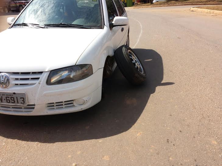 Segundo testemunhas, o carro perdeu a roda do veículo logo após realizar uma manobra na rotatória do posto Floresta, sentido centro-bairro.