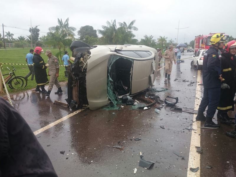 A cena presenciada por várias testemunhas chamou atenção pelo cenário da colisão. Um dos carros capotou e outro ficou parcialmente destruído com o impacto que ocorreu durante a chuva que castiga Rio Branco por dias seguidos.