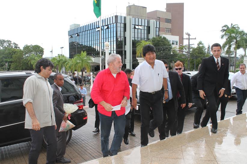 Se aproximava das 14 horas desta quinta-feira, 7 de maio, quando a comitiva governamental adentrou o Palácio Rio Branco. À frente, o governador Sebastião Viana acompanhado do ex-presidente Luiz Inácio Lula da Silva, o presidente da Bolívia Evo Morales e sua comitiva composta por cinco ministro e ainda o governador do Estado do Piauí, Wellington Dias acompanhado do seu vice e assessores.