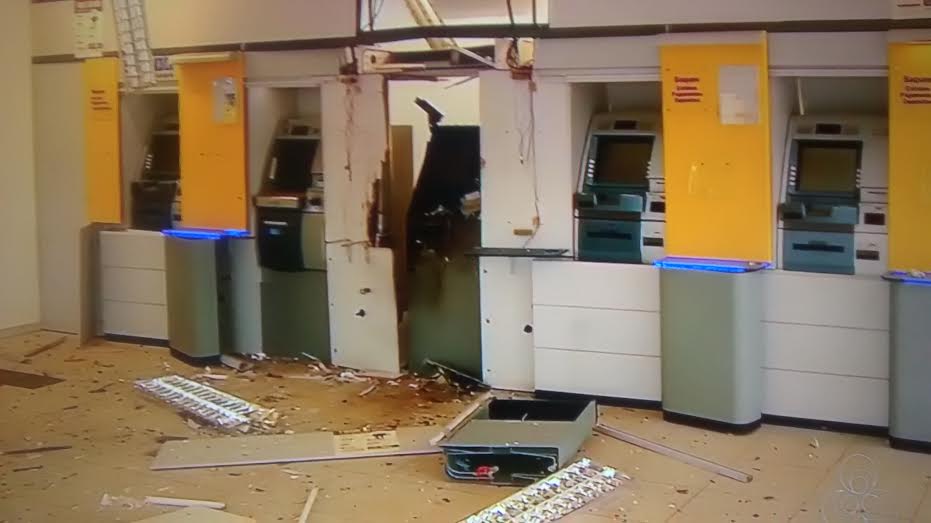 Provavelmente usando dinamites, bandidos explodiram um dos caixas eletrônicos da agência e destruíram também, a parte externa do prédio, quebrando vidros com a o impacto da explosão.