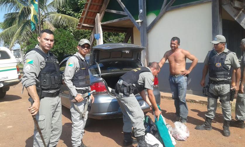 Também foi encontrado no interior do porta malas do veículo, um animal silvestre Cutia que já havia sido abatido e mais dois facões.