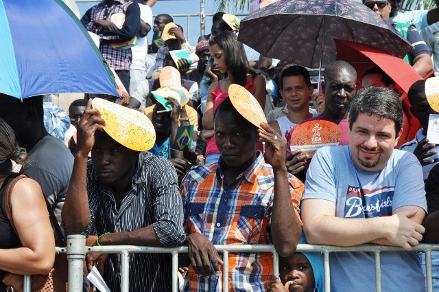 Os haitianos ficaram juntos num mesmo lugar numa das arquibancadas do desfile. Muitos deles usaram seus celulares para filmar o evento.