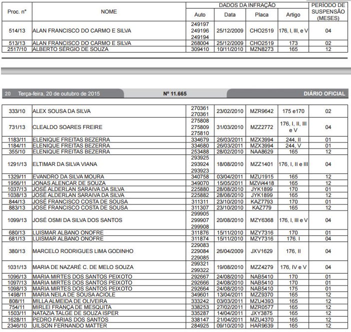 Ainda segundo a publicação, transcorrido o período de suspensão e comprovada a freqüência a curso de reciclagem, os condutores poderão requerer a devolução de suas habilitações.