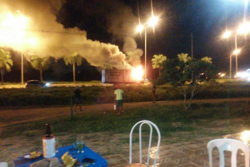 Um caminhão baú de placa MZM 7166, de cor amarela, pegou fogo na noite desta terça-feira, 9, no último dia de carnaval em Rio Branco. O sinistro aconteceu no bairro Areial, no segundo distrito da capital.