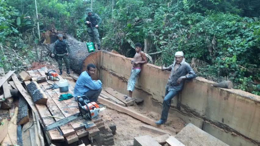 Geneci De Oliveira Carvalho, 45, Jose Vaz da Silva, 29, e Raimundo Missiano da Silva, 22, foram detidos em flagrante , após denúncia de retirada de madeira ilegal, na Rodovia AC – 40.