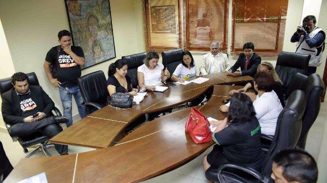 Logo após serem recebidos pela comissão de saúde, os sindicatos de cada categoria de servidores da saúde, se reuniram na ALEAC com Irailton Lima, secretário adjunto de saúde do Estado, onde se construiu um acordo entre trabalhadores de saúde e governo.