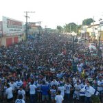 Ao lado de assessores, o prefeito Marcus Viana marchou para Jesus com uma camisa branca pedindo paz. O petista foi bastante cumprimentado e posou para fotos.
