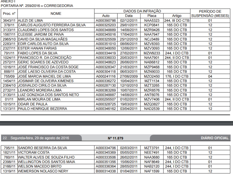 O Departamento Estadual de Trânsito (Detran-AC) divulgou nova lista com nomes de condutores com o direito de dirigir suspenso. Na relação consta mais de 25 nomes. A lista, publicada no Diário Oficial desta segunda-feira (29), informa também o período de suspensão da habilitação de cada condutor.