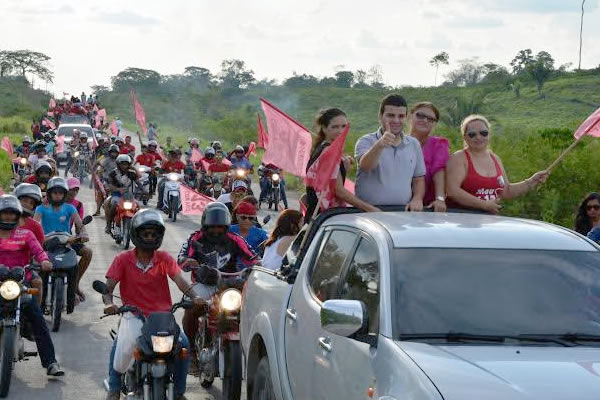 O ato político foi precedido de uma carreata da militância de Rodrigo pela BR-364 até a Vila, lugar em que centenas de pessoas já aguardavam o candidato para o evento.