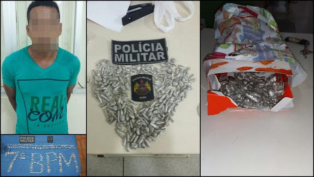Policiais militares prenderam Raimundo Bezerra Gomes, 28 anos, morador do Bairro do Corcovado, em Tarauacá, por embalar droga em papel de presente.