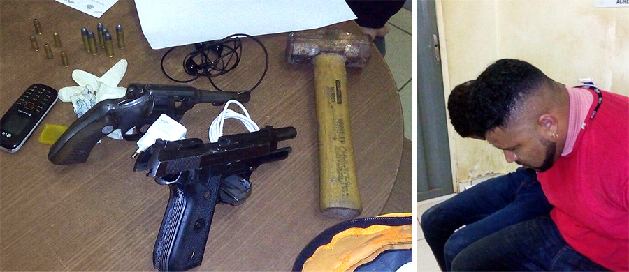 Após ronda no local, a dupla tentou fugir quando percebeu a presença dos policiais, mas foram alcançados e presos pelos militares. Com eles foram encontrados dois revolveres carregados com munições e um galão contendo um líquido inflável.