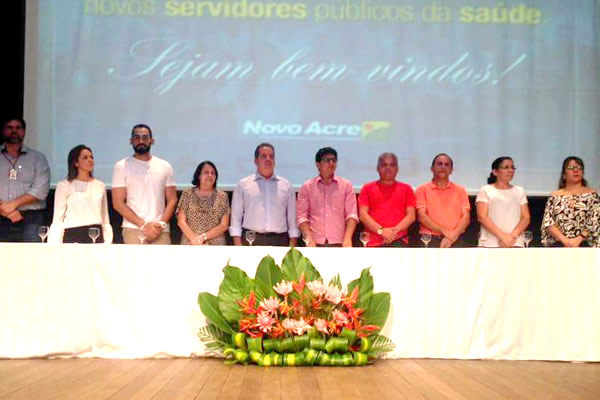 Em solenidade na noite desta segunda-feira no Teatro Plácido de Castro, o governador Sebastião Viana empossou 168 novos servidores na Secretaria de Saúde do Acre aprovados nos concursos públicos realizados em 2013 e 2014. Com este número o governo reúne o total de 2.868 servidores efetivados na Sesacre, nos últimos seis anos.