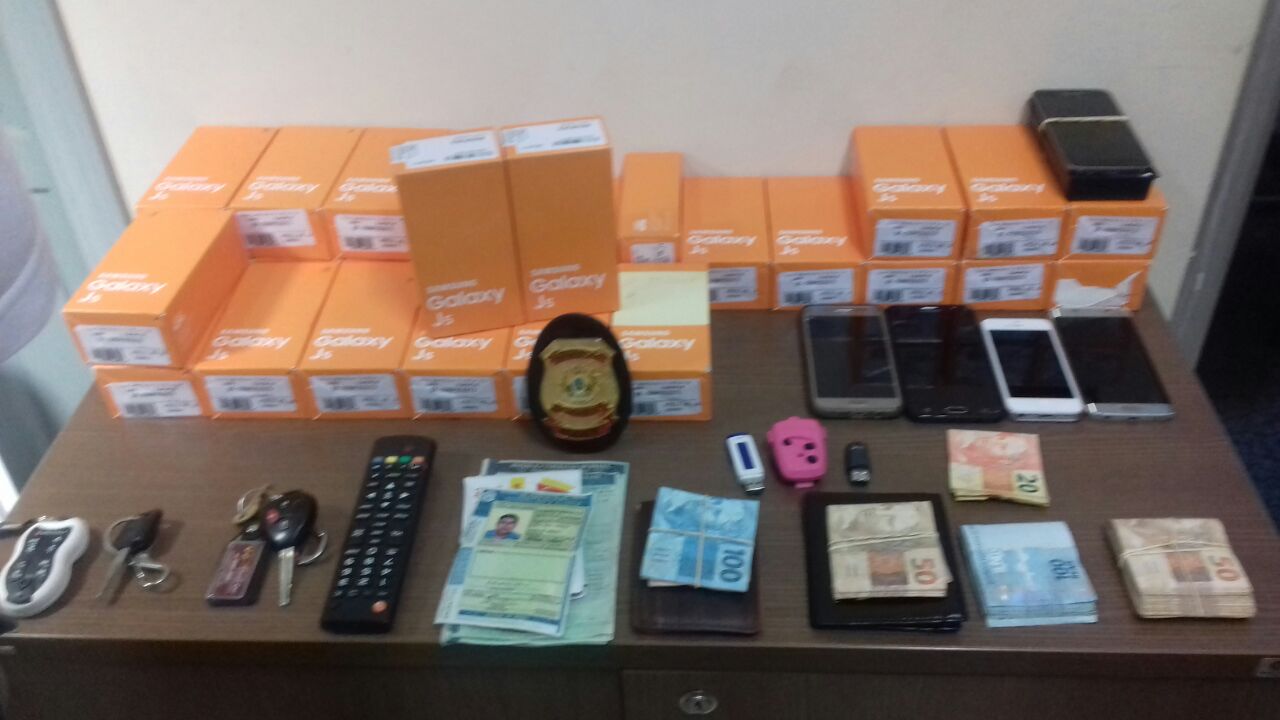 De acordo com o delegado Karlesso Nespoli, com os envolvidos foram encontrados 27 caixas de celulares ainda na caixa, cinco mil reais em espécie, três televisores, três caixas de som amplificada, além de duas caminhonetes e duas motocicletas.