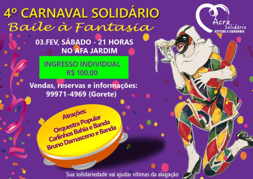 O evento promovido pelo Acre Solidário terá A renda revertida a projetos sociais apoiados pelo movimento, além de beneficiar atingidos pelas enchentes.