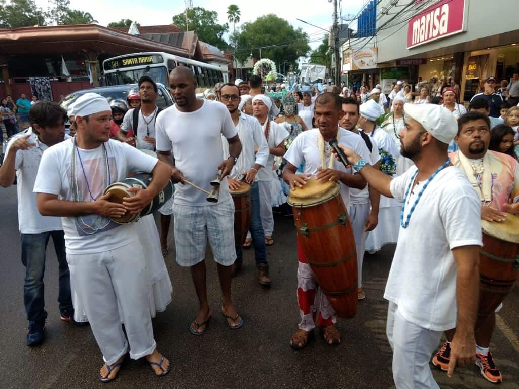 Vestidos com roupas nas cores azul e branco e com instrumentos nas mãos, grupos de matrizes africanas, religiosos do candomblé e umbanda, como conduziram a imagem de Iemanjá com celebração, cânticos e danças.