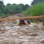 Na chegada, a travessia no açude exigiu força e tranquilidade. Superar um trecho com água na altura do pescoço não é pra qualquer um.