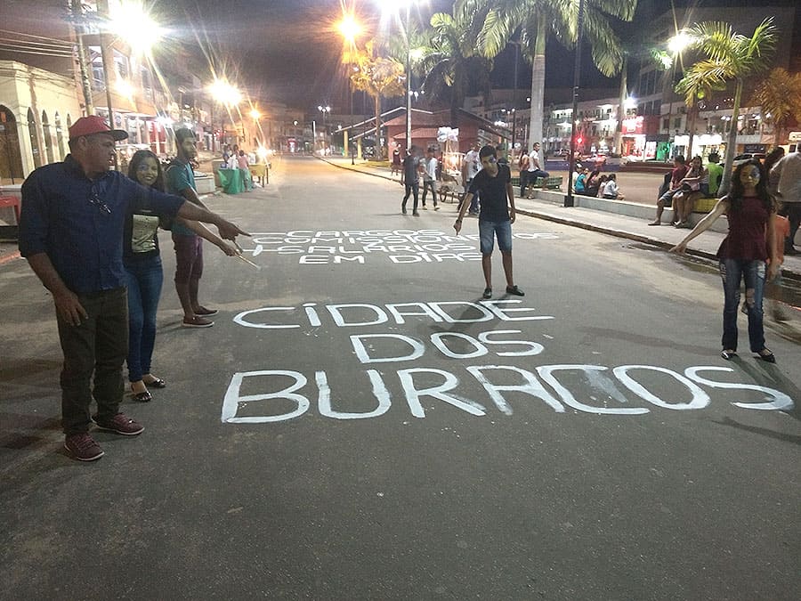 “SOS CZS”, “cidade dos buracos”, “cargos comissionados salários em dias”, escreveram os manifestantes em uma das vias do Centro da Cidade ao lado praça central. Em uma outra rua, eles pintaram os buracos e cobraram investimentos do dinheiro arrecadado a partir do IPTU.