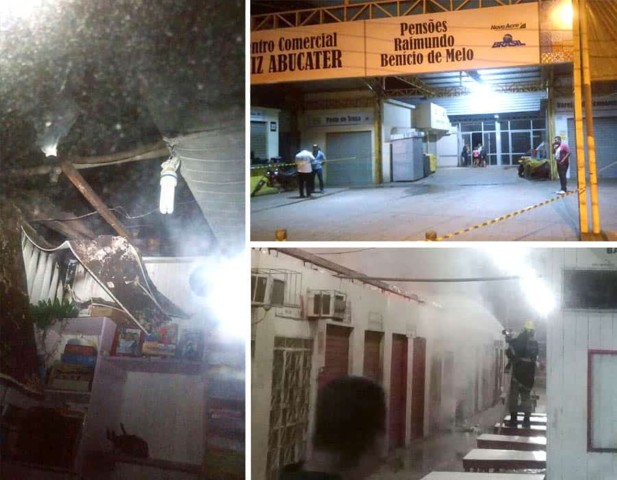 Um incêndio que pode ter iniciado na parte elétrica de uma loja de venda e manutenção de celulares na noite de terça-feira (8) atingiu pelo menos outras seis lojas do mercado Aziz Abucater, no Camelódromo, no centro de Rio Branco. Das seis lojas atingidas, apenas duas foram sofreram maiores prejuízos.