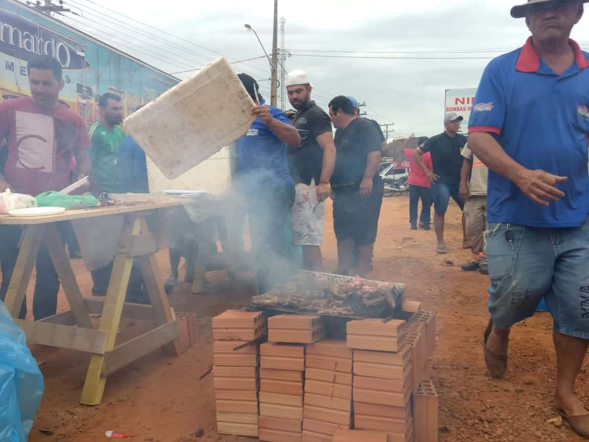 Enquanto realizavam a manifestação, os caminhoneiros assavam carne para o almoço desta quinta. O almoço foi serviço para pelo menos 200 caminhoneiros.