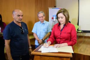 A prefeita de Rio Branco, Socorro Neri, assinou nesta quinta-feira (05) ordem de serviço para construção de novos espaços públicos na capital. Realizado no auditório da Biblioteca Pública, o ato de assinatura dos documentos que autorizam a execução de 17 obras reuniu parlamentares, gestores do Estado e Município, representantes do setor da construção civil e lideranças comunitárias. Entre os parlamentares presentes estavam o senador Jorge Viana e os deputados federais Léo de Brito, Raimundo Angelim. Representando o deputado federal Flaviano Melo, estava o assessor parlamentar Roberto Assaf. Os deputados Daniel Zen e Heitor Júnior, os vereadores Eduardo Farias, Mamed Dankar, Rodrigo Forneck e Antonio Morais também estavam presentes.