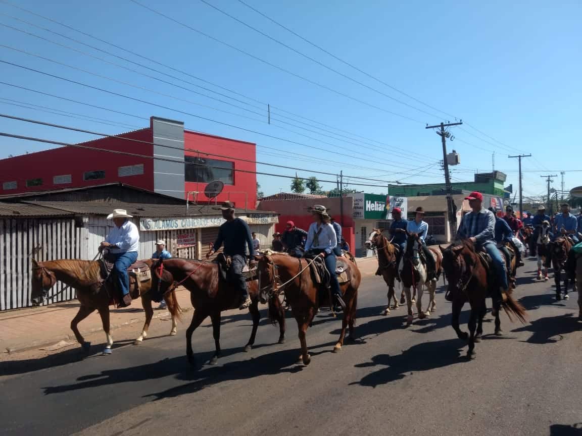 Com a ausência do governador, a primeira dama Marlúcia Cândida, ao lado da filha Catarina, puxou a fila de cavaleiros e amazonas.
