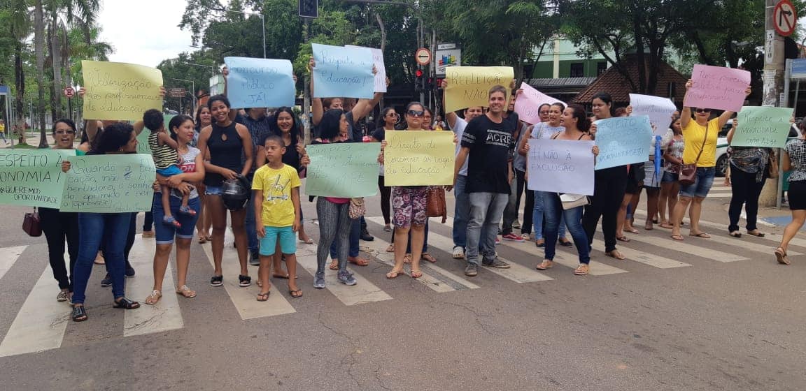Após demissões, professores fazem protesto em frente à Prefeitura de Rio Branco